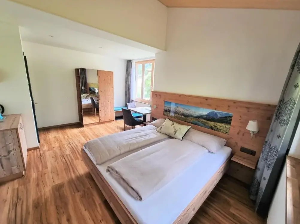 Ci è stata assegnata una camera più grande di quella prenotata e all'arrivo siamo stati informati che la cucina del ristorante vicino chiude alle 20:00. Quindi lo sapevamo e siamo riusciti ad andare a cena in tempo. Era una passeggiata di 6-7 minuti. Padroni di casa molto gentili, camere pulite e buona colazione.